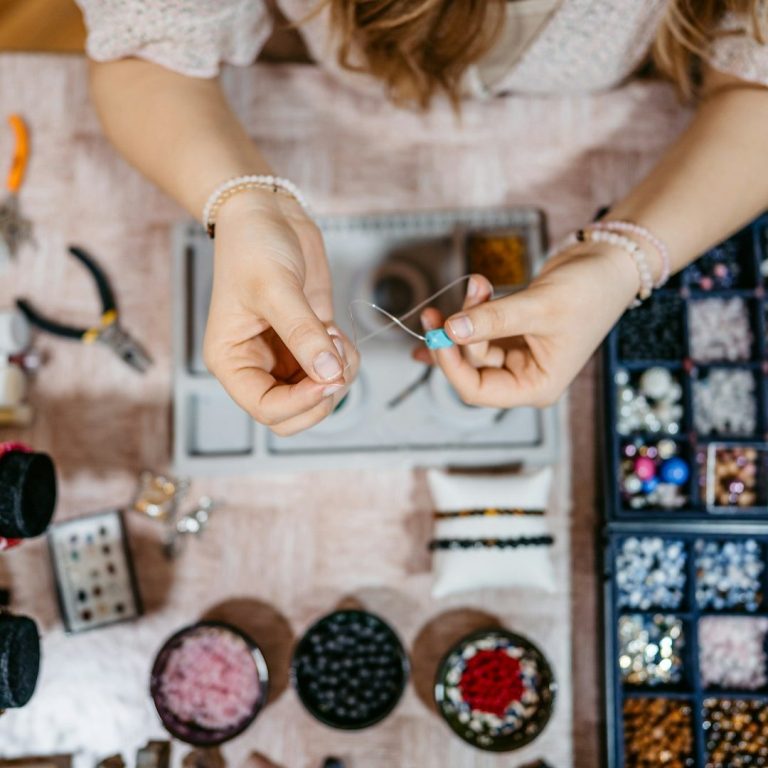 Wir basteln und kreieren zur Schmuckparty oder JUngesellinnenabschied zum Beispiel hübsche Ketten, Ohrringe und Armbänder. Jeder gestaltet seine Schmuckstücke nach seiner eigenen Vorstellung. Hierfür stehen glitzernde Glasperlen und verschiedene Schmuckrohlinge in Silber und Antikbronze zur Verfügung.
